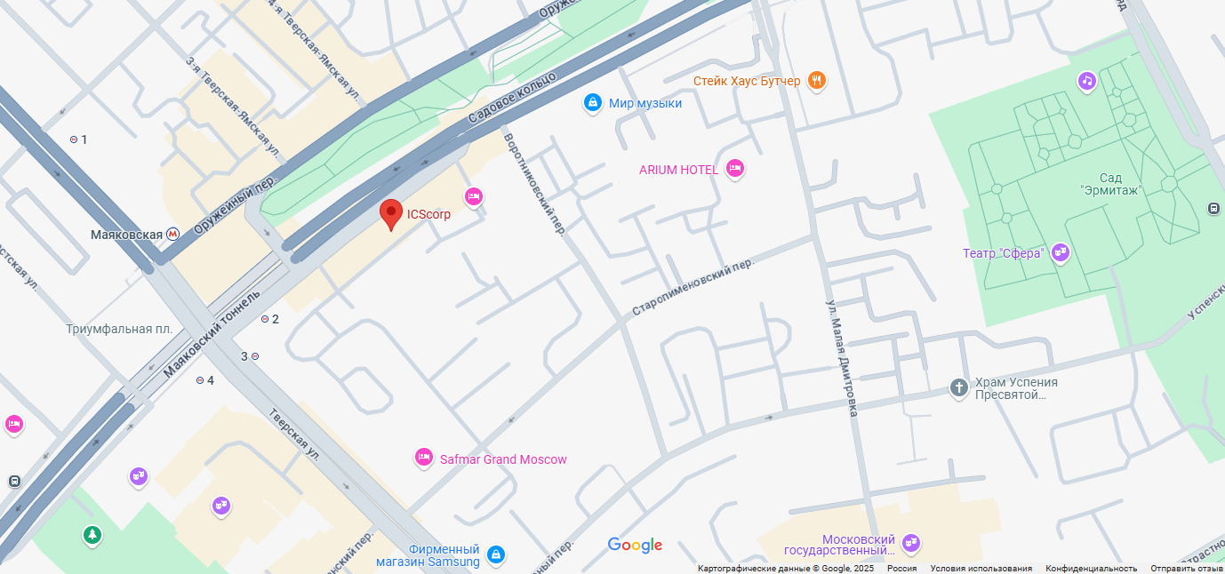 127006, г. Москва, ул. Садовая-Триумфальная, д. 4-10 (3 минуты ходьбы от м. Маяковская)